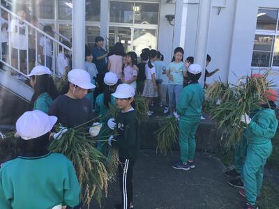 はぜ掛けして乾燥させ、脱穀、籾摺り、精米とお米になるまでには、まだまだ作業が残っています。私たちの主食となる米ですから、その作られ方を知ることは、とても大切!田んぼの準備から種蒔き、収穫に至るまでの管理を面倒見てくださった稲作指導の先生には、感謝しかありません。ありがとうございます。まだ、先の工程もあるのでどうぞよろしくお願いいたします。