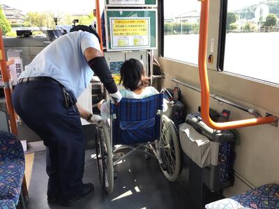 リーバスには車いすで乗車するお客様も安心して乗れるように工夫がされています。