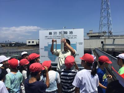 ここからは、下水道事務所です。全体的な説明を聞いて、各施設の見学をします。