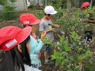 旬畑では、ブルーベリーの摘み取り体験をさせていただきました。おいしいブルーベリーの見分け方も教えていただき、たくさん収穫できました。