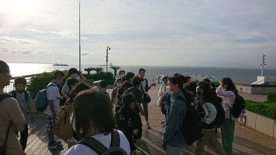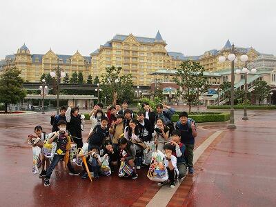 2日目はディズニーランドです。雨風の強いあいにくの空模様ですが、班で協力しながら活動することができました。