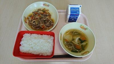 3時間目が終わったところで、簡単な清掃をして、給食を取りました。