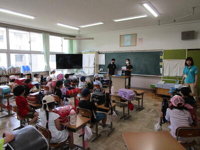 幼稚園等と小学校の先生方が来校され、みなみ小学校の職員と一緒に1年生の生活科を参観しました。