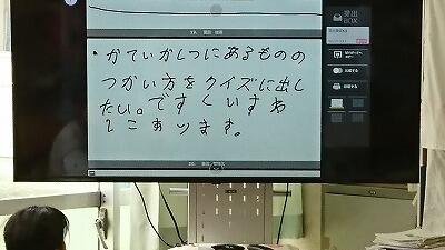 一人一人がタブレットに紹介したいことを書き込み、それを教室のモニターで共有しました。