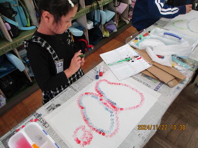 版画の学習が始まり、本校元職員の高橋正江先生が指導に来てくださいました。