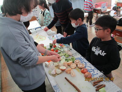 食べられるものや見られるものを考えたり、発音の練習をしたりしました。