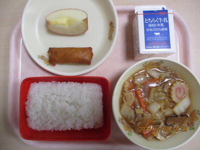 献立は、ご飯、マーボー春雨、ポーク焼売、ぶどう、牛乳でした。