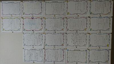 2年生の廊下には、「言われてうれしかった言葉」が掲示されています。