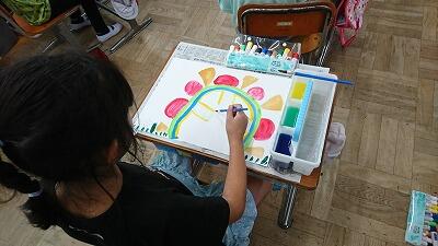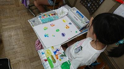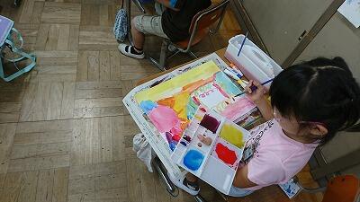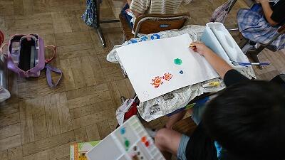 絵の具と筆で、のびのびと描くことを楽しんでいました。