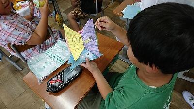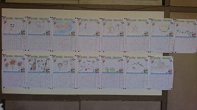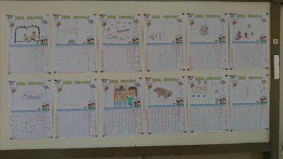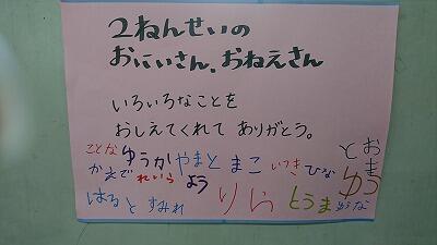2年生の教室に、1年生から贈られた学校探検のお礼が掲示してありました。