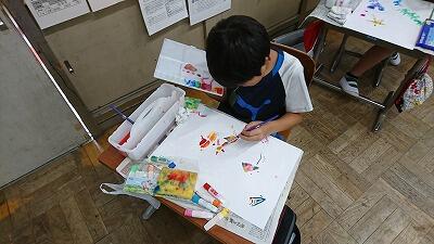画用紙の上で色が混ざったりにじんだりする様子を楽しみながら描いていました。