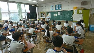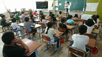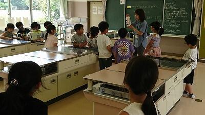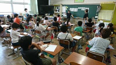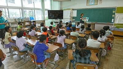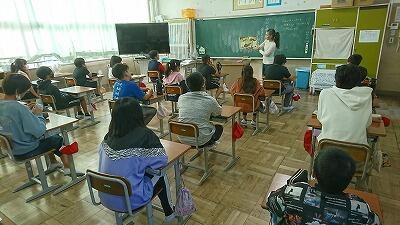 児童の下校後、自然観察ボランティアの先生を講師にお招きして、「生物多様性の保護と外来生物」というテーマで職員の研修会を持ちました。