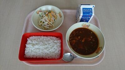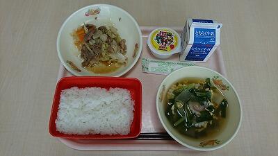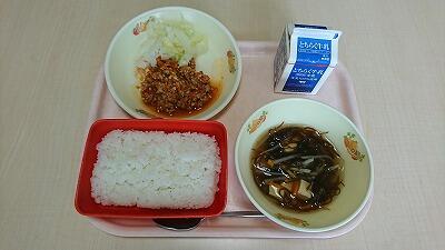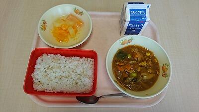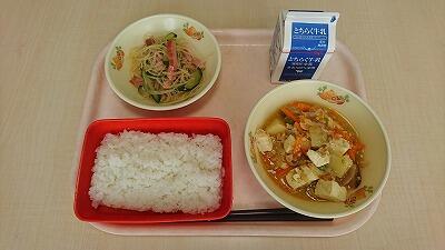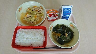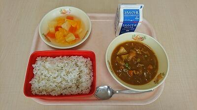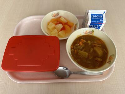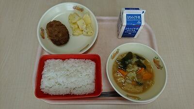 今日の献立は、ご飯、けいちゃん、冬瓜スープ、アセロラゼリー、牛乳でした。