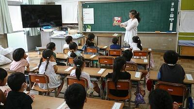 朝の学習の時間に、ボランティアによる読み聞かせをしていただきました。