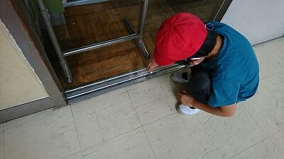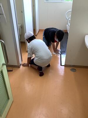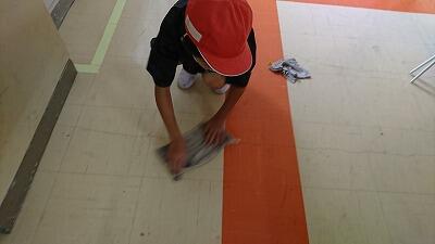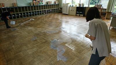 児童の下校後、先生方は教室のワックスがけも行いました。