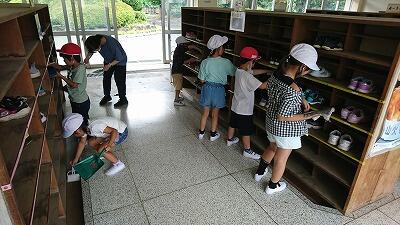 今日は日課を変更し、清掃の時間を30分確保して大掃除をしました。