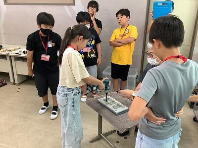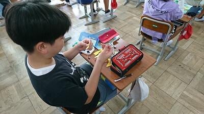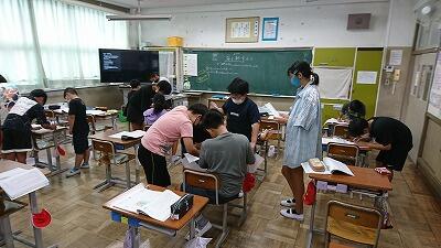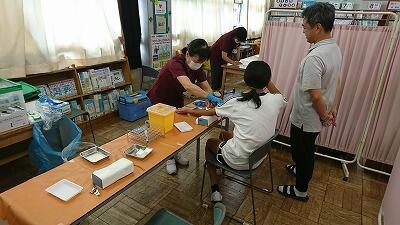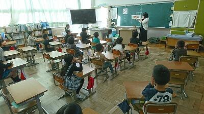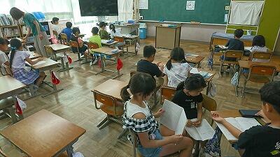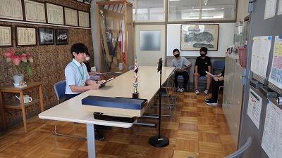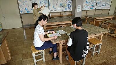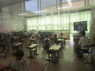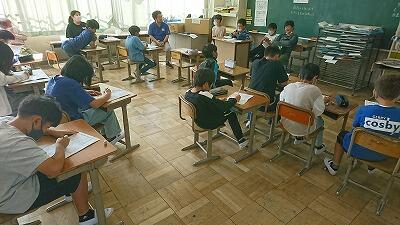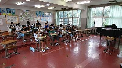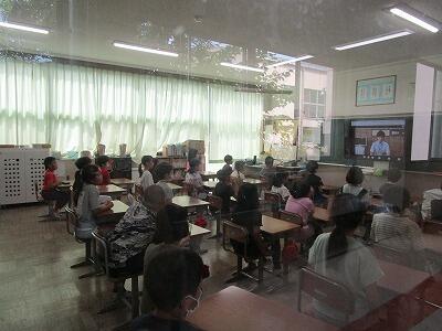 気温が高くなってしまったので、体育館からエアコンのある視聴覚室に変更して行いました。