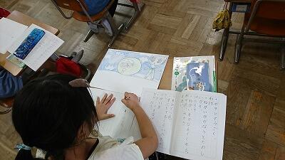 子どもたちやくじらぐものようすを思い浮かべながら読もうというめあてで学習しました。