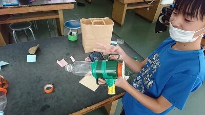 二つのペットボトルを見て、どちらに水がたくさん入るか予想しました。