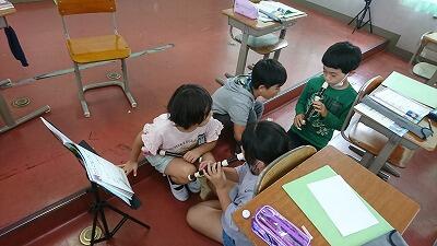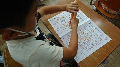 歌を歌ったり、リコーダーを演奏したりしている様子です。