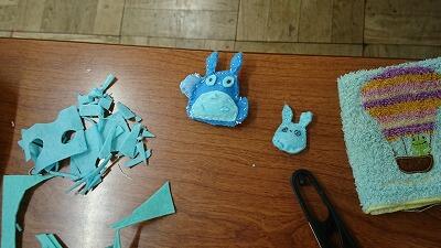 絵にしたいことを考えながら、ちぎった紙をはっていきました。