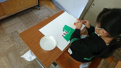 ちぎった紙の並べ方やはり方を工夫して、絵をかくことをめあてに学習しました。
