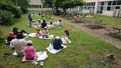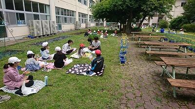 この「わかば給食」は学校の自然に親しみながら、他学年の児童同士の交流を図ることが目的です。