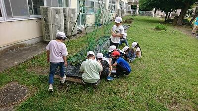 草取りをしながら、昨年のこぼれ種から育ったであろう、マリーゴールドやホウセンカに気付く児童がいました。