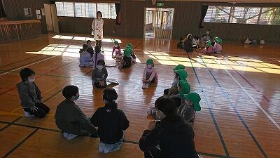 いきいきタイムに、体育館で「5年生との引き継ぎ式」を行いました。