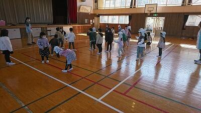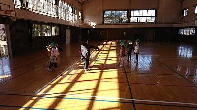 体育館で保育園のお友達をお迎えした後、始めの会を行いました。