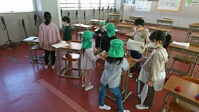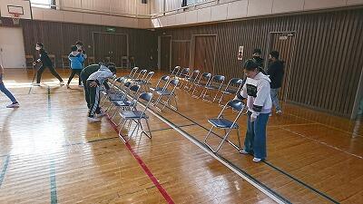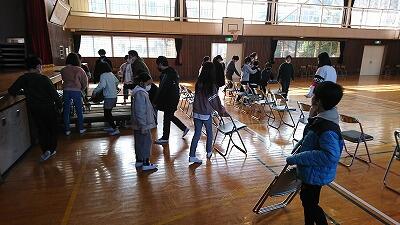 今日のいきいきタイムに5年生が卒業式の会場設営のシミュレーションをしました。
