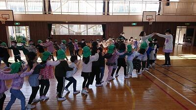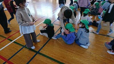 1年生にとって、小学校の様子や楽しさを分かりやすく年長児に伝えたり、年長児と仲良く遊んだりすることを通して、上級生になる喜びを味わわせるとともに、年長児に対する思いやりの気持ちを育むことをねらいに行いました。