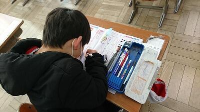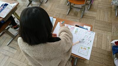 書写ノートで学習し、終わった児童から、思いを込める漢字一文字を考えました。