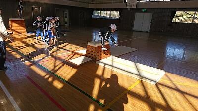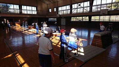 マットや跳び箱をセットしたブースを複数用意して運動遊びをしました。