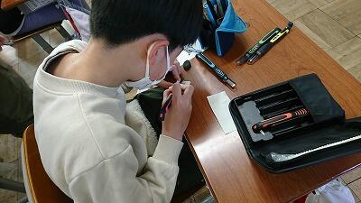 卒業にあたり、今の心情や将来への思いを漢字一文字にこめようというめあてで学習しました。