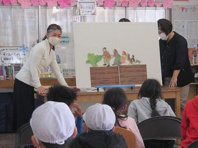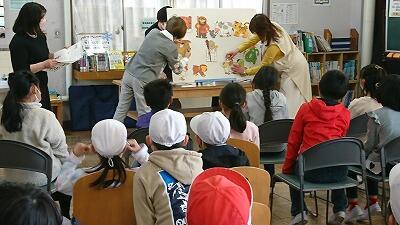 今日の朝の活動に時間に、ボランティアの方による本の読み聞かせがありました。
