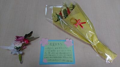 教職員一人一人に花束とコサージュと感謝の手紙をいただきました。