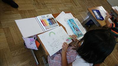 6年生の国語では、宮沢賢治の「やまなし」の世界を絵に表して、場面の様子を思い浮かべる学習をしていました。