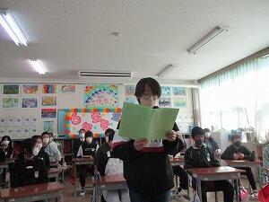 各学年の代表児童が、お別れの言葉を述べ6年生と最後の交流をしました。