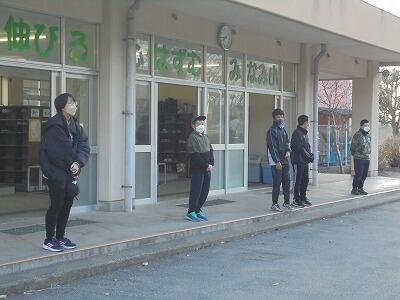 卒業を前にした6年生が、昇降口前で「朝のあいさつ運動」を展開してくれています。