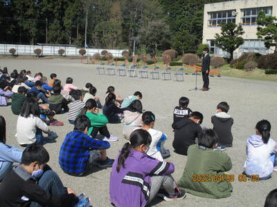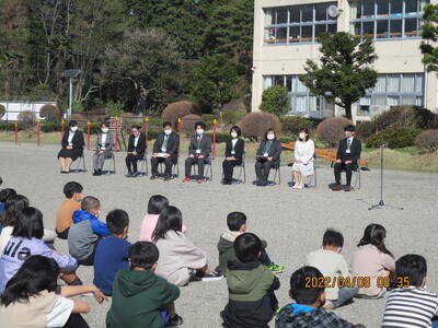 今日のいきいきタイムの時間、1~4年生と6年生との「お別れの式」を校庭で行いました。