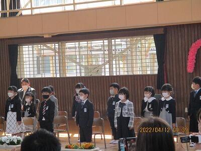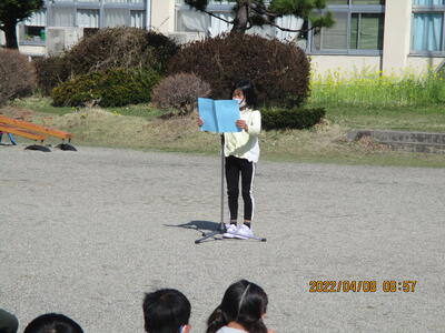 学校長の式辞、PTA会長のお祝いの言葉に続き、6年生による歓迎の言葉もしっかり聞くことができました。