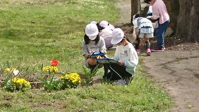 5年生の図画工作は、絵画制作「季節を感じて」の単元です。一人一台タブレットを使って、絵画のモチーフを写真に収めていました。ICT機器をフル活用です。