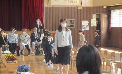 保護者の皆様、PTA役員の皆様が見守る中、緊張した面持ちで1年生が入場してきました。