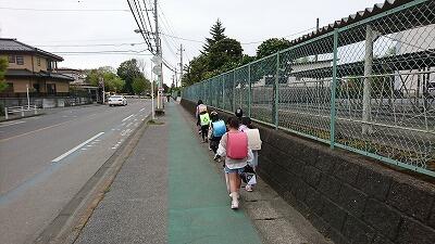 昨日の入学式では立派に参加した1年生が、今日初めて通学班で登校しました。