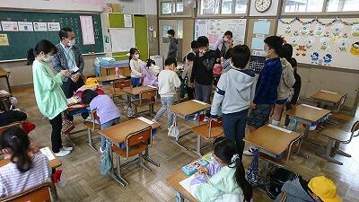 たまたま、1年生の教室にいましたが、児童はすばやく机の下に避難し、揺れが落ち着くまで黙って待つことができました。