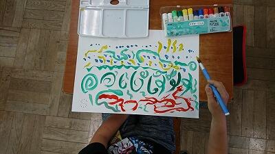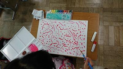 水で溶いた絵の具を混ぜ合わせ様々な色を作り出し、楽しみながら素敵な作品を作成しました。