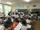 1、2、3年生の教室に応援団が応援歌を伝えに行きました。各組を盛り上げるために、子ども