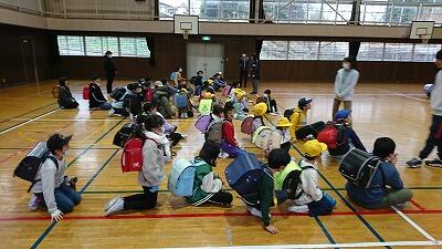 下刻前に体育館に集まり、町ごとに日頃の登下校の様子について振り返りました。