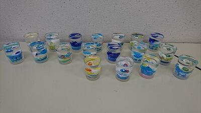 昼食の後、午後の活動のジェルキャンドルづくりをしました。容器にカラーサンドや貝殻、ガラス細工を配置して融かしたジェルを入れてキャンドルを作ります。色の組み合わせや小物の配置を工夫して世界に一つのジェルキャンドルを作りました。